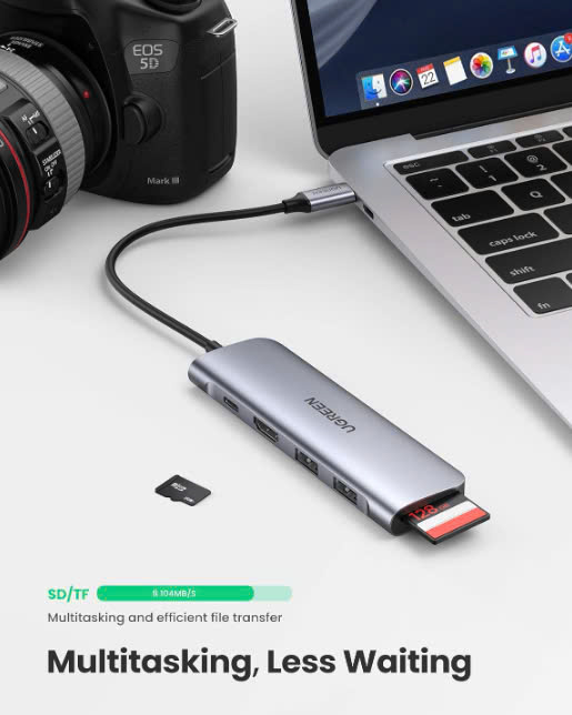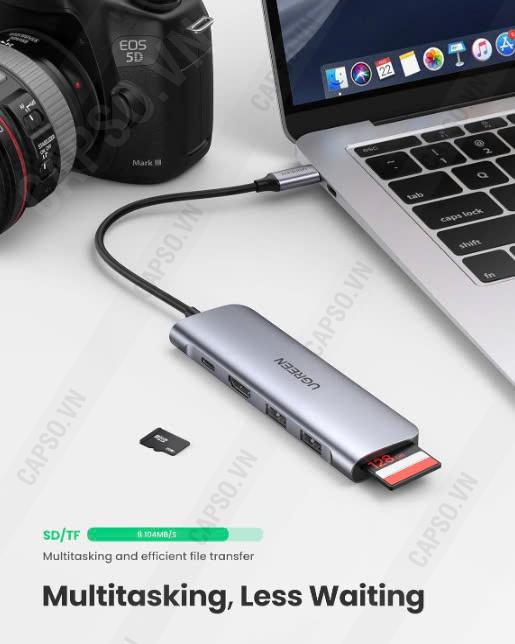 - Ngoài các tính năng cao cấp kể trên, Ugreen 70411 còn được trang bị thêm khe cắm thẻ nhớ TF/SD giúp bạn kết nối truy xuất dữ liệu từ thẻ nhớ của bạn tiện lợi và nhanh chóng.