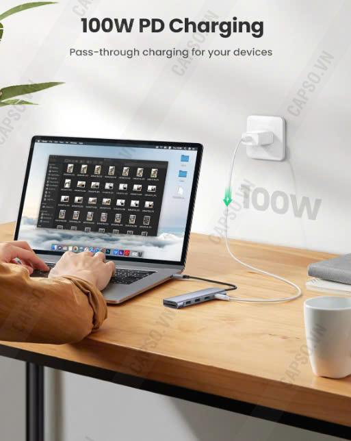 - Cung cấp năng lượng USB C 100W: USB C OTG này cho phép bạn sạc MacBook Pro, Dell XPS, Lenovo hoặc các máy tính xách tay Type-C khác ở mức tối đa 100W (20V / 5A, 15V / 3A, 9V / 3A, 5V / 3A), ngay cả khi kết nối nhiều thiết bị ngoại vi để truyền dữ liệu. Cổng USB C chỉ hỗ trợ sạc PD, không cho truyền dữ liệu. Bộ sạc PD được bán riêng.