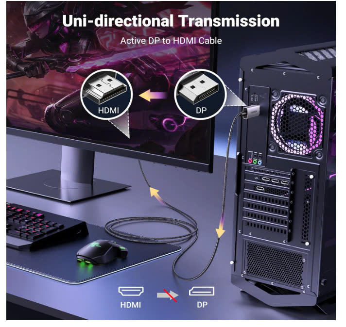 Khả năng tương thích phổ quát: Tương thích với các tháp máy tính để bàn hỗ trợ DisplayPort (HP, Dell Optiplex/Precision/xps, Lenovo), card đồ họa (AMD, NVIDIA), máy tính xách tay (HP ProBook EliteBook, Lenovo, ThinkPad) và các thiết bị khác. Kết nối với TV, máy chiếu, màn hình, tai nghe VR hoặc thiết bị khác hỗ trợ HDMI để truyền cả video và âm thanh. Xin lưu ý rằng sản phẩm không tương thích với các thiết bị nguồn HDMI như MacBook, PlayStation, Switch và Xbox