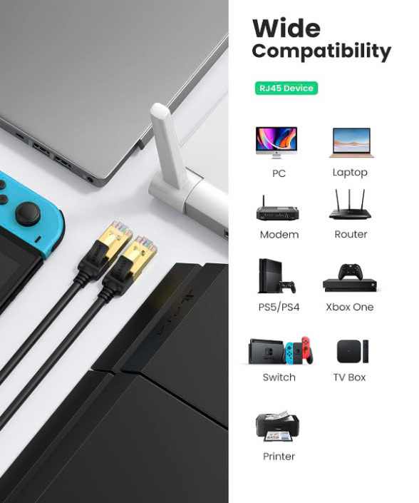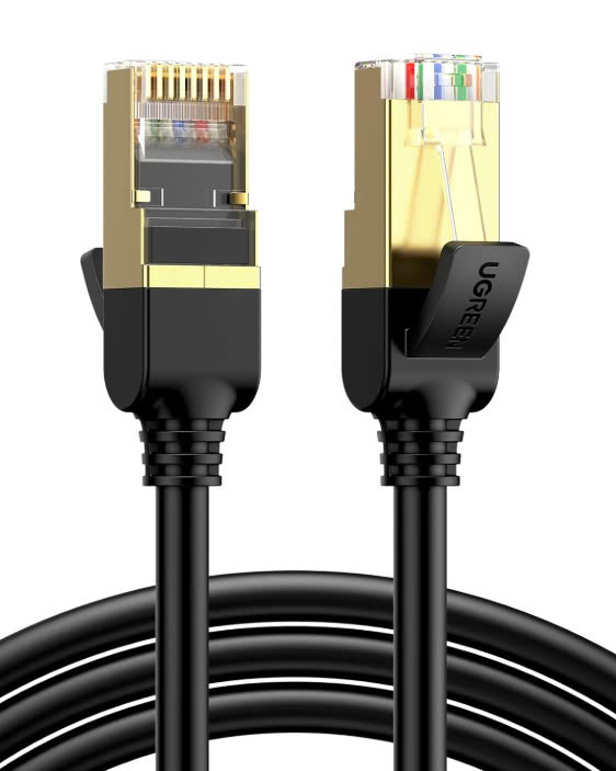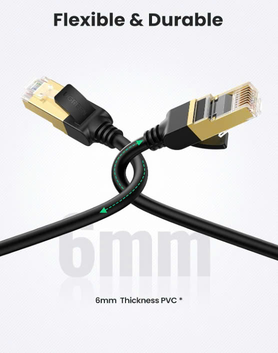 -Cáp mạng đúc sẵn CAT7 được Ugreen thiết kế với kiểu dáng tròn, cực kì thuận tiện cho việc di dây. Với sợi cáp được làm bằng đồng nguyên chất cùng với 2 đầu cáp được bọc bằng kim loại mạ vàng 24k chống nhiễu sóng, giúp tốc độ đường truyền cực kì nhanh chóng, ổn định và bền vững trước mọi loại thời tiết ở Việt Nam.