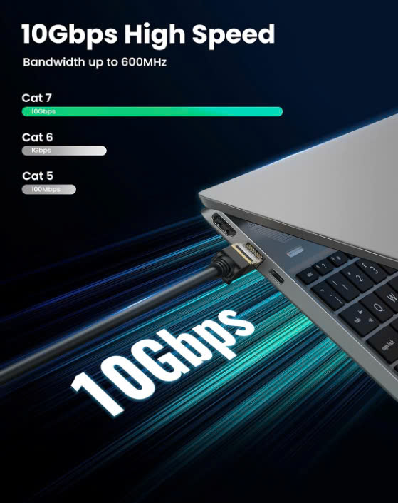 -Cáp mạng CAT7 được chính hãng Ugreen thiết kế và sản xuất trên dây chuyền tiên tiến với những nguyên liệu đầu vào cao cấp đạt chuẩn quốc tế, với khả năng truyền dẫn tín hiệu mạng LAN với tốc độ cao, ổn đinh và cực kì bền vững.