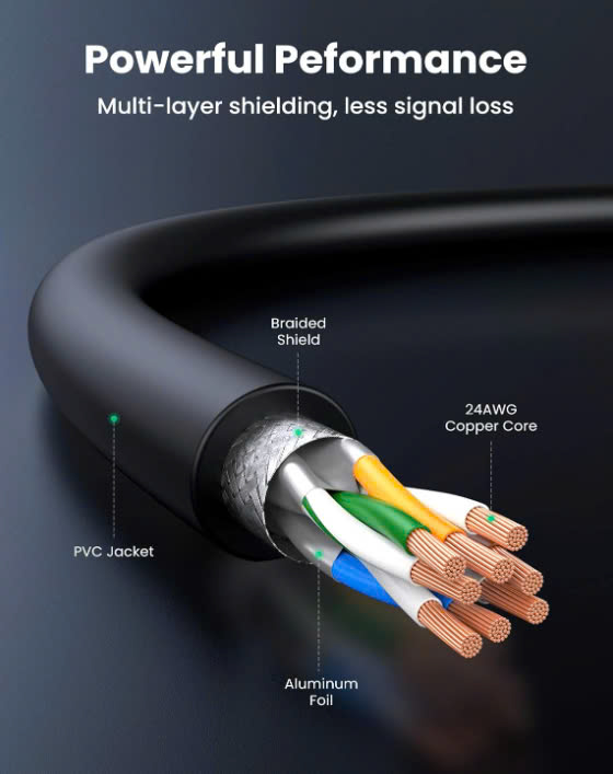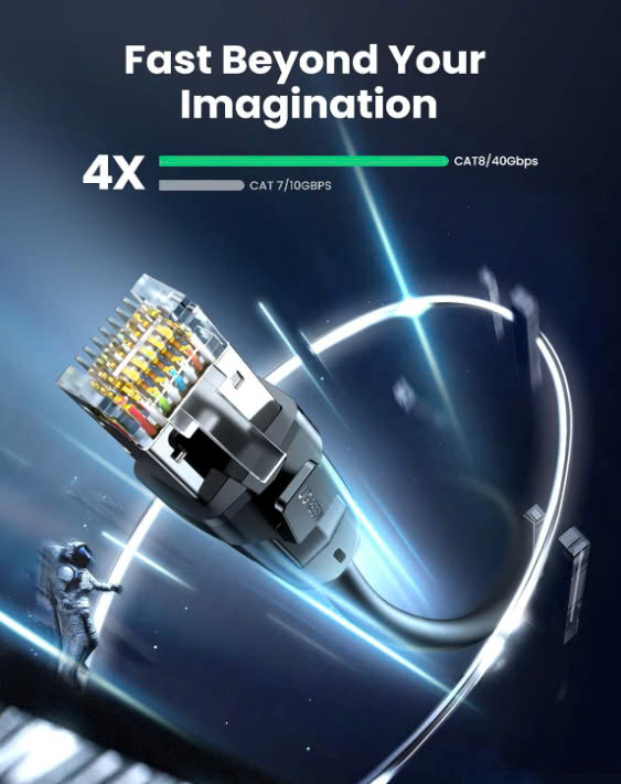 - Với tiêu chuẩn nối dây T568B, cáp Loại 8 tương thích ngược với tất cả các kết nối ethernet Cat5e, Cat6, Cat6A và Cat7 cũ, giúp mạng doanh nghiệp và trung tâm dữ liệu của bạn vẫn có khả năng tương lai hơn.