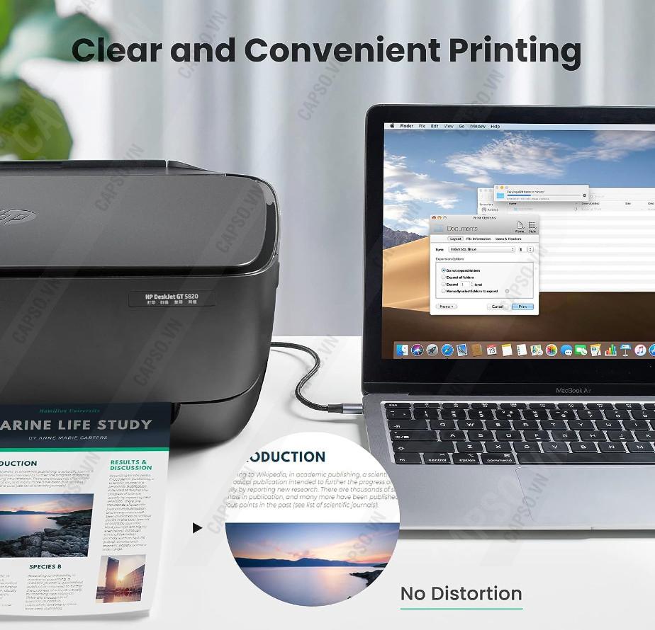 Khả năng tương thích máy in và máy quét rộng máy in dài Ugreen 80805: Cáp máy in USB C đến USB 2.0 Loại B tương thích với các máy in và máy quét HP, Brother, Canon, Epson, Samsung, Fujitsu, Panasonic, Dell.