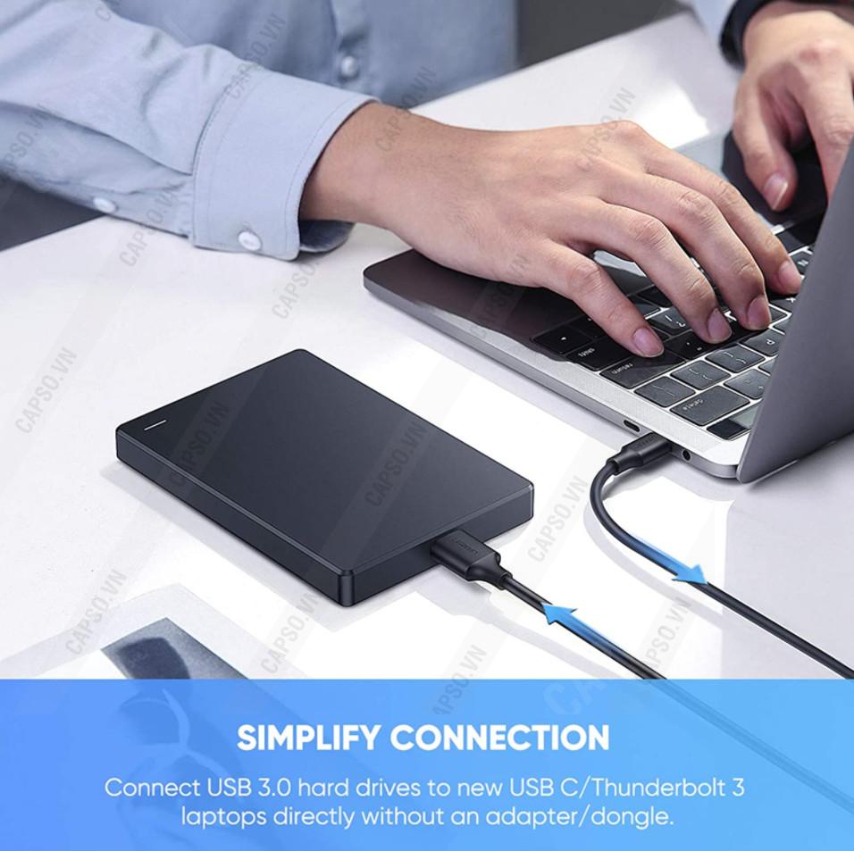 Cáp dữ liệu USB Type C to Micro B-USB 3.0 Ugreen 20103 được thiết kế để kết nối trực tiếp các ổ cứng di động của bạn tương thích với các thiết bị cổng USB C/ Thunderbolt 3, loại bỏ việc sử dụng bộ chuyển đổi quá rườm rà, giúp bạn dễ dàng mở rộng không gian lưu trữ cho laptop thông qua việc gắn ổ cứng di động USB 3.0, chỉnh sửa video / ảnh / tài liệu trên ổ cứng một cách nhanh chóng.