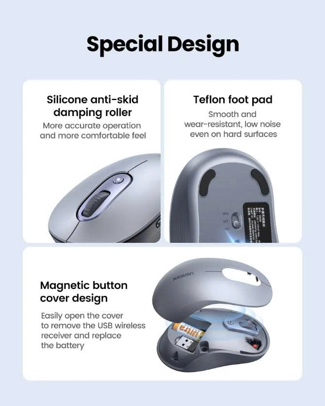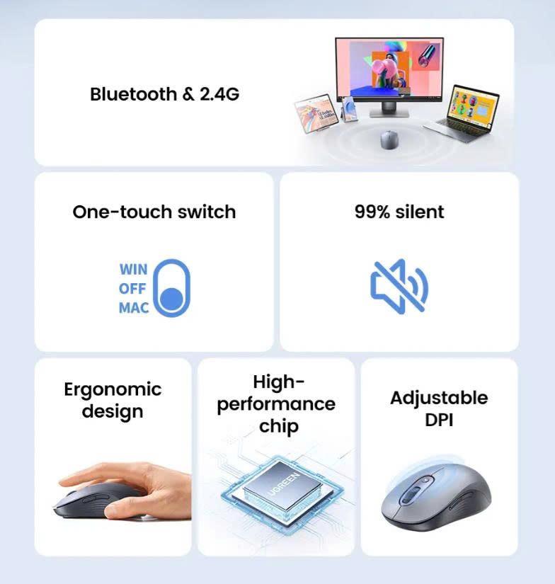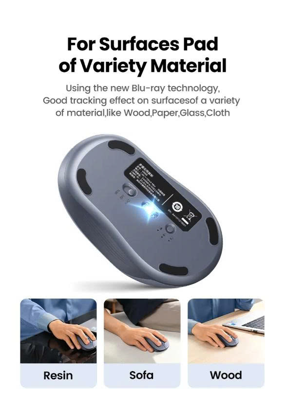 Chuột không dây 2.4Ghz + Bluetooth màu xám Ugreen 45149 M556