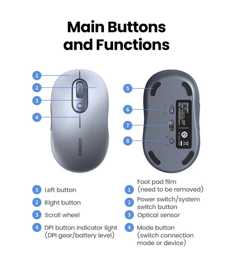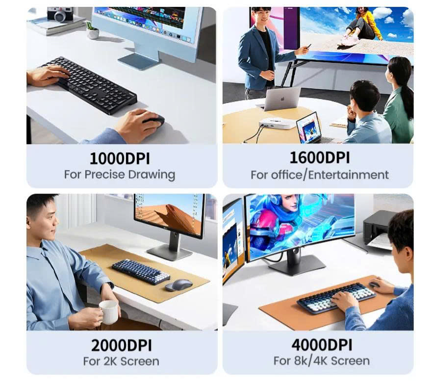 Chuột được trang bị 4 mức DPI linh hoạt: 1000, 1600, 2000, 4000, giúp bạn dễ dàng điều chỉnh tốc độ con trỏ theo nhu cầu sử dụng. Với độ nhạy cao lên đến 4000 DPI, UGREEN 35900 phù hợp cho cả công việc văn phòng lẫn các tác vụ cần độ chính xác cao như thiết kế đồ họa.