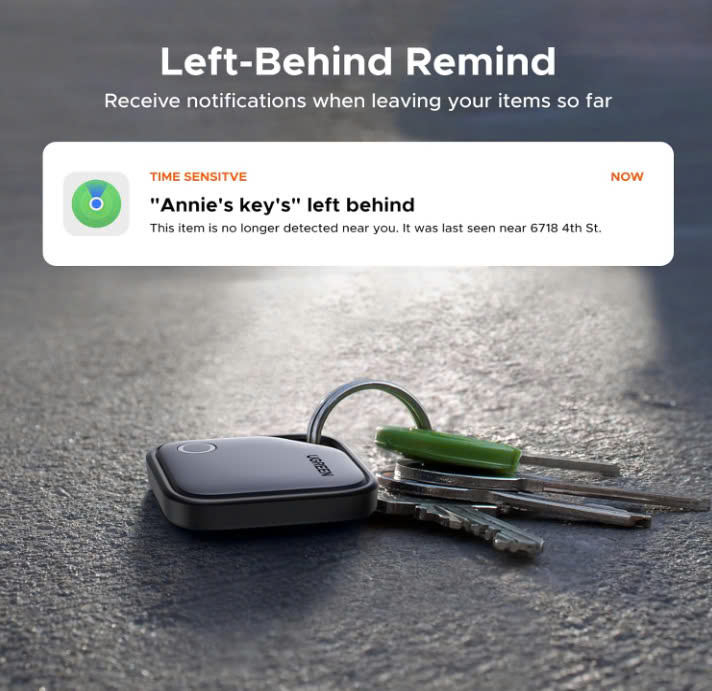 - Thiết kế siêu nhỏ gọn và chu đáo: Với thiết kế nhỏ gọn và mỏng (36 × 36 × 7,4mm), Finder Tag dễ dàng gắn vào các vật dụng quan trọng như chìa khóa, ví và hành lý