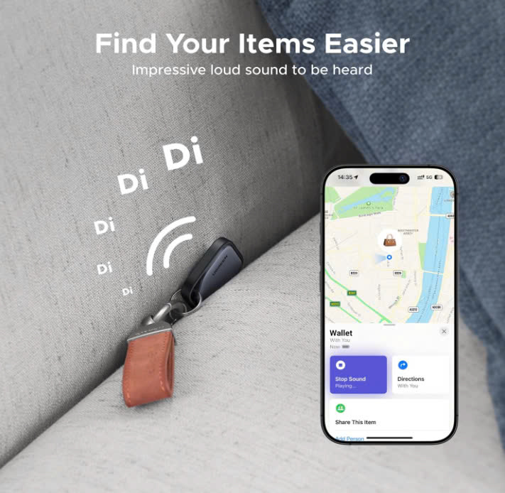 Tính năng: Sử dụng định vị Apple Find My Certified để theo dõi hành lý, chìa khóa...