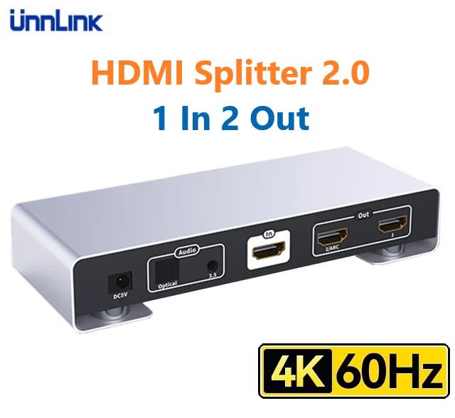 Unnlink UHD 4K 60Hz Bộ Chia HDMI 1 Vào 2 Ra, Bộ Chuyển Đổi Đồng Bộ Truyền Âm Thanh Và Video Cho Xbox PS4 DVD HDTV PC Laptop TV