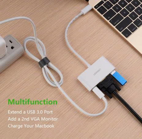 Ngoài khả năng xuất hình ảnh chất lượng FullHD tới màn hình, máy chiếu qua cổng VGA, Cáp kết nối máy chiếu USB-C cao cấp Ugreen 30376 còn tích hợp cổng USB 3.0 hỗ trợ tốc độ truyền tải dữ liệu lên đến 5Gbps, dễ dàng kết nối chia sẽ dữ liệu từ các thiết bị ngoại vi như chuột, bàn phím, đầu đọc thẻ, ổ cứng di động, usb hub... ngoài ra, cổng USB 3.0 đi kèm này còn hỗ trợ sạc nguồn cho điện thoại di động, máy tính báng.. với nguồn ra hỗ trợ lên đên 900mA.
