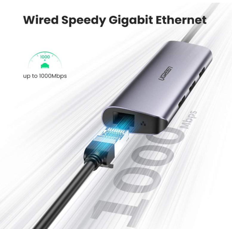 Cáp chuyển USB Type C sang Lan kèm hub USB 3.0 Ugreen 60718 có hỗ trợ cấp nguồn