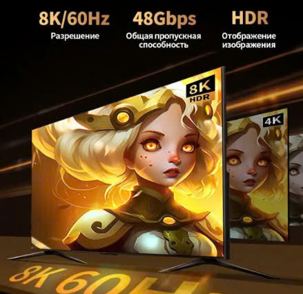 - Hỗ trợ truyền tải hình ảnh với độ phân giải lên đến 8K @ 60Hz, mang lại chất lượng hình ảnh sắc nét và chi tiết.