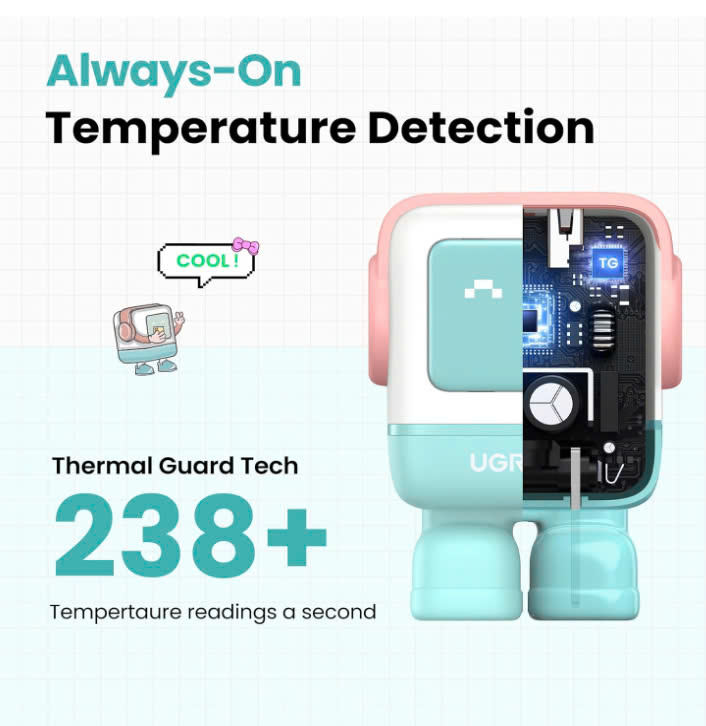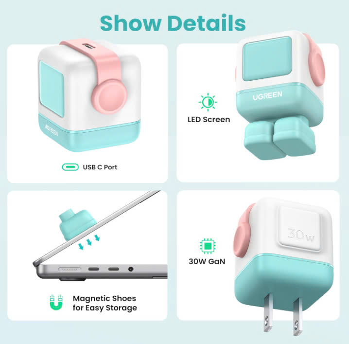 - Củ sạc nhanh Nexode RG 30W Type C Ugreen 45089 : tương lai và đáng yêu của chúng tôi, bộ sạc nhỏ hình robot này kết hợp chức năng với sự vui tươi, khiến nó trở thành phụ kiện lý tưởng cho mọi nhu cầu sạc của bạn khi đang di chuyển