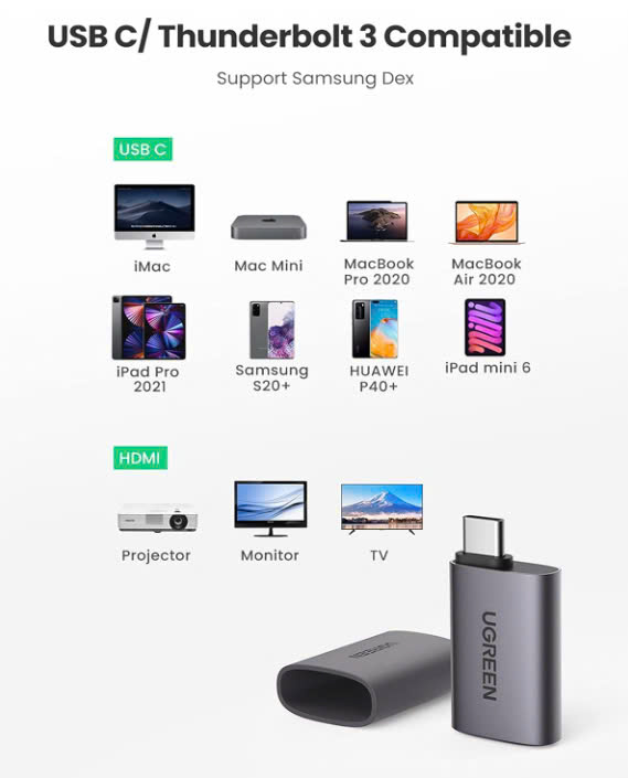 - Bộ chuyển đổi USB type C sang HDMI cung cấp cho bạn trải nghiệm dễ dàng để kết nối máy tính xách tay, máy tính bảng, điện thoại thông minh hỗ trợ cổng USB C với HDTV hoặc màn hình hỗ trợ cổng HDMI