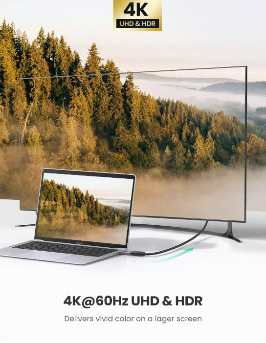 - Hỗ trợ độ phân giải 4K @ 60HZ mang lại trải nghiệm xem tuyệt vời cho trò chơi điện tử, phim trực tuyến, cuộc gọi hội nghị, thuyết trình…