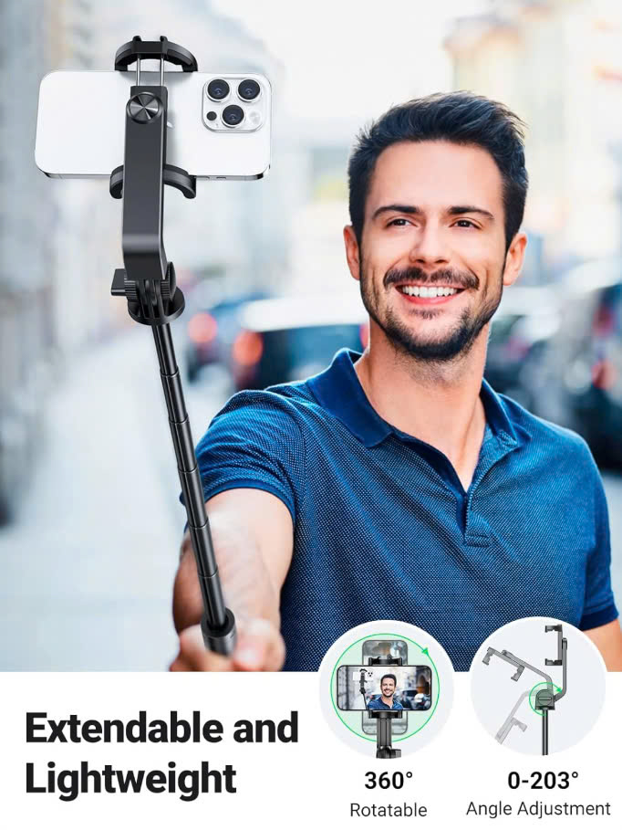 - Gậy tự sướng này được thiết kế cho nhiều ứng dụng khác nhau. Trạng thái ban đầu và có thể mở rộng của nó cho phép bạn chụp ảnh tự sướng hoặc ảnh nhóm với gia đình và bạn bè. Thêm vào đó, chế độ chân máy của nó giúp bạn rảnh tay để quay video hoặc phát sóng trực tiếp khi đi du lịch một mình hoặc đi làm.