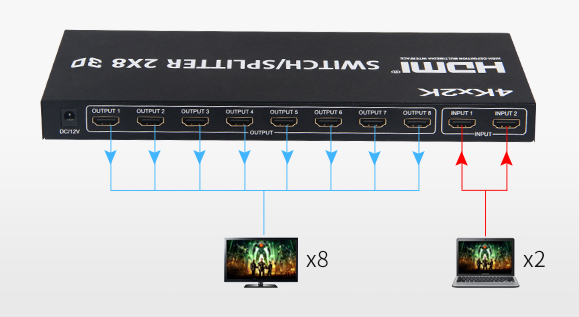 - HDMI splitter 2x8 4Kx2K 3D, HDCP