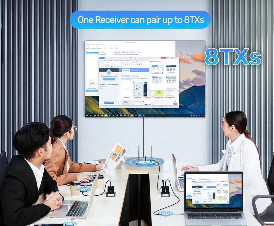 • Hỗ trợ nhiều máy phát: Có thể kết nối tối đa 8 máy phát vào 1 máy thu để sử dụng linh hoạt hơn.
